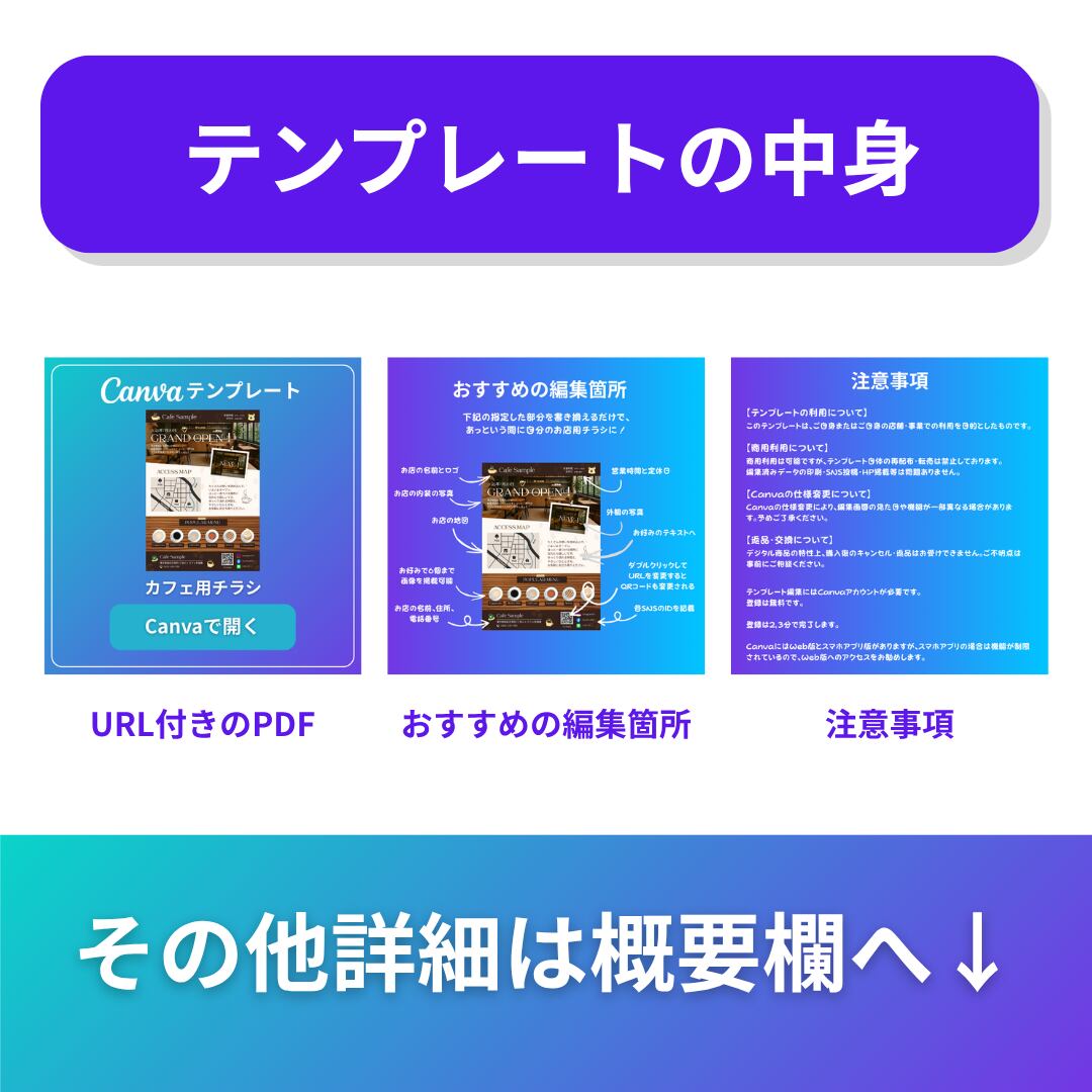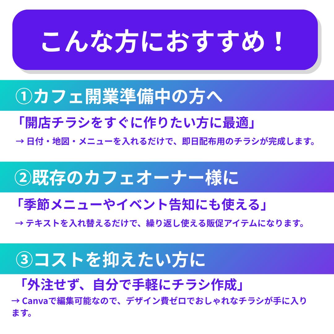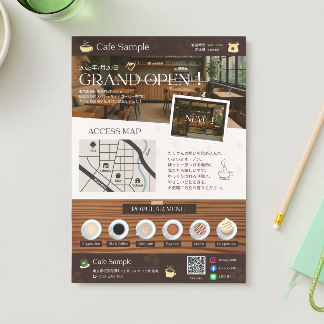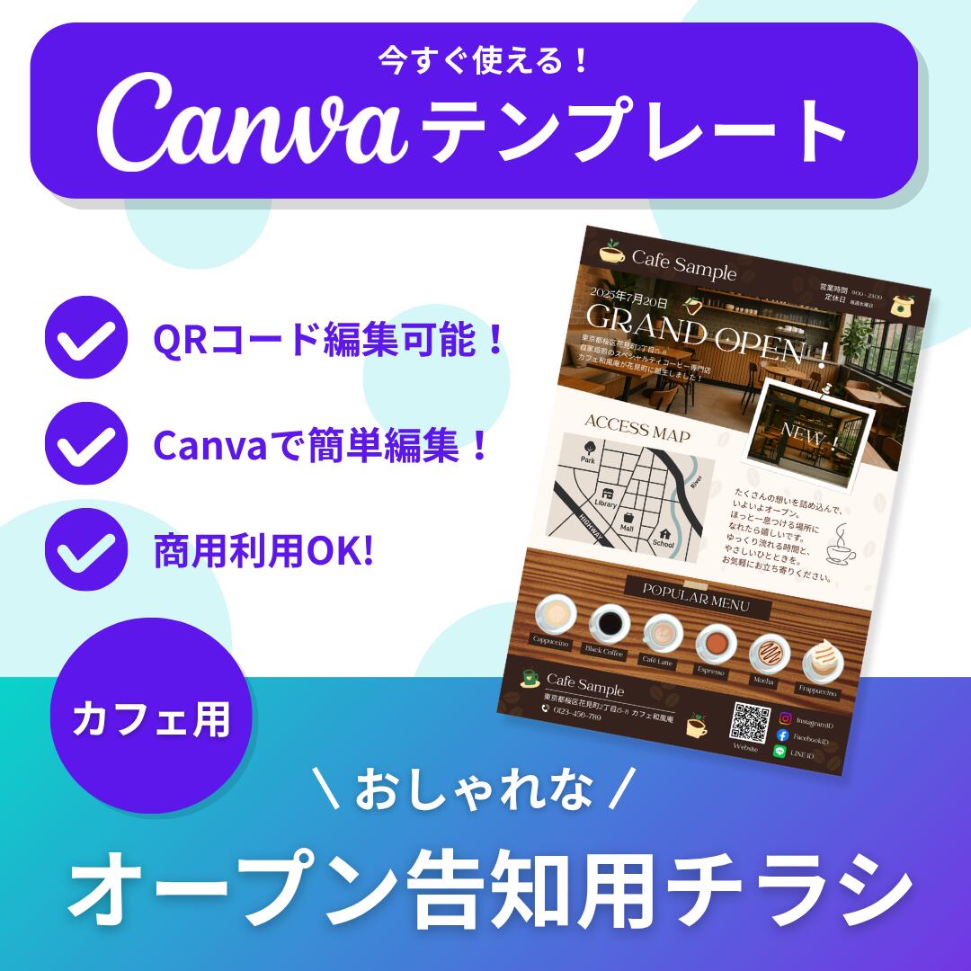 【Canva専用テンプレート】カフェ向け|おしゃれなオープン告知用チラシ|Canvaで簡単編集