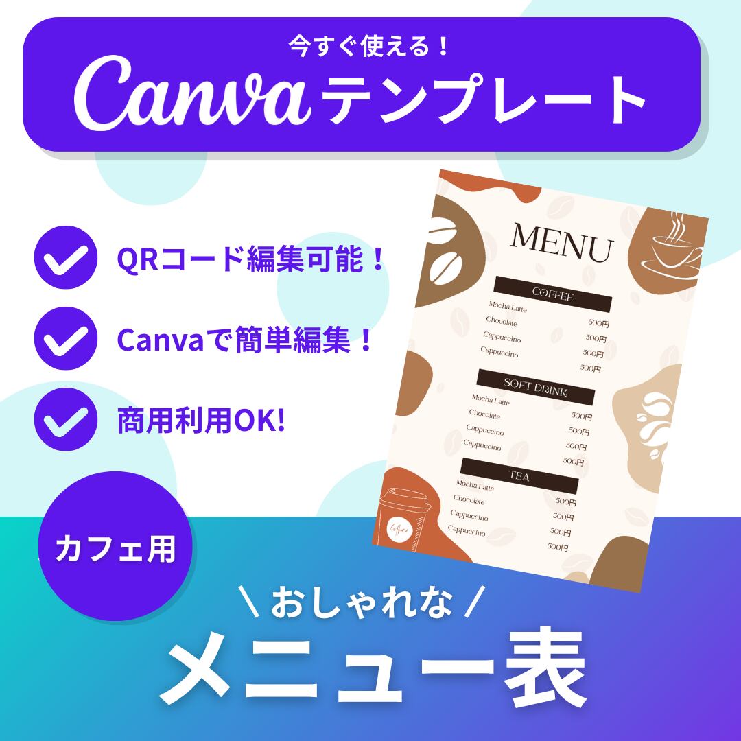 【Canva専用テンプレート】カフェ向け|おしゃれでかわいいメニュー表|スマホ編集OK・印刷も可