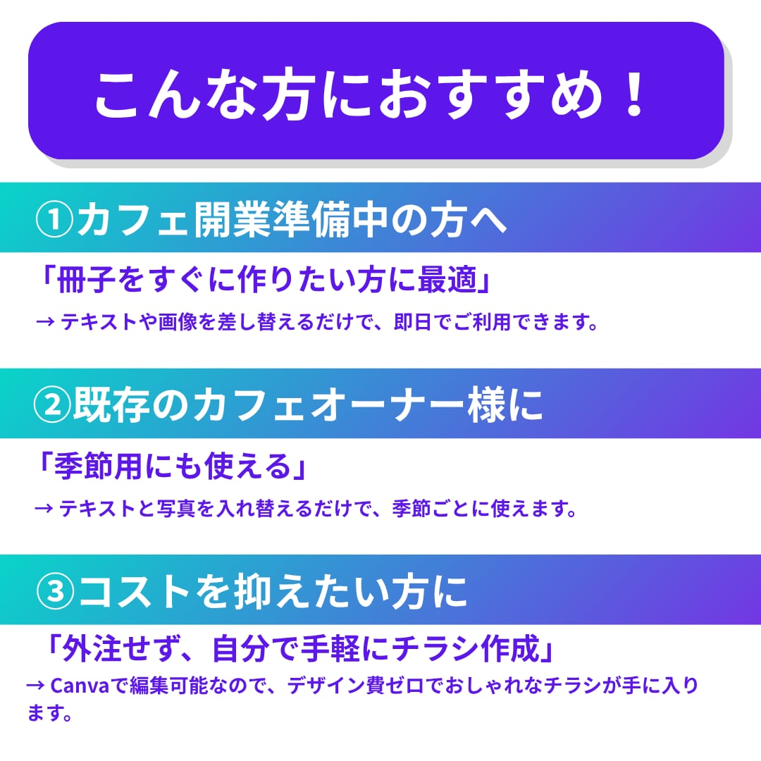 カフェオーナー様やこれから開業を予定している方にぴったりの、