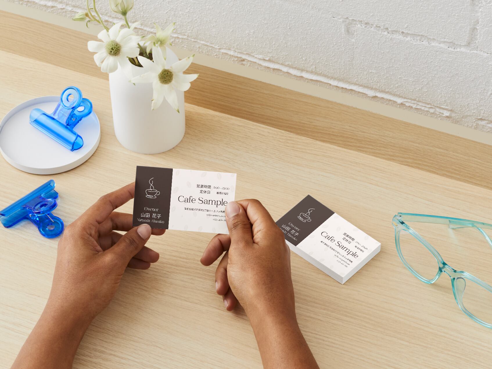 スマホ・PCどちらからでも編集可能で、テキストや写真を差し替えるだけで、すぐに使える本格的な名刺・ショップカードが完成します。