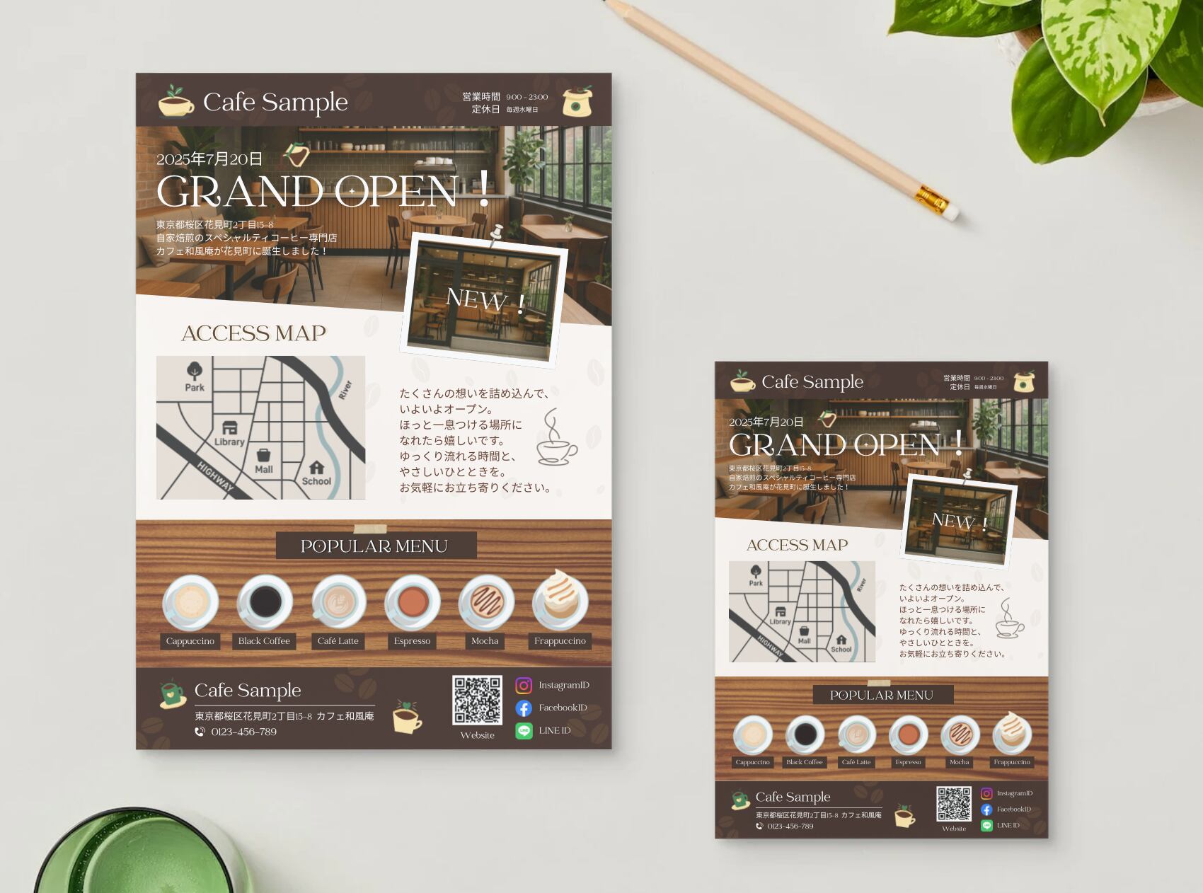 【Canva専用テンプレート】カフェ向け|おしゃれなオープン告知用チラシ|Canvaで簡単編集